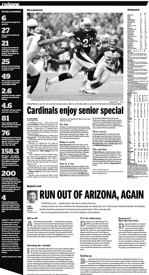 Cover pages, inside pages and live social cards for the Bucs redzone section.